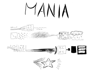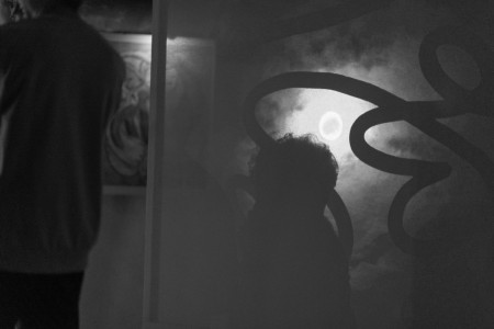 Dirigée par une recherche de nouvelles formes et dispositifs de cinéma, l'installation présente le cours d’une nuit d’insomnie, de quête d'inspiration et de méditation sur la création. Le visiteur est invité à naviguer librement entre différentes œuvres de l’artiste et visionner un film en polyptyque, projeté sur des toiles suspendues.