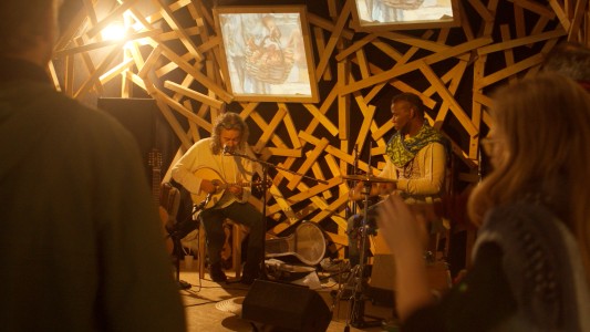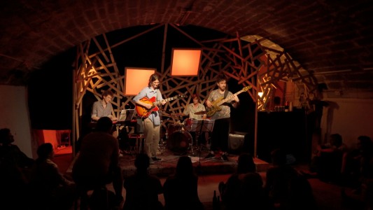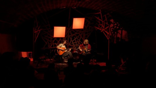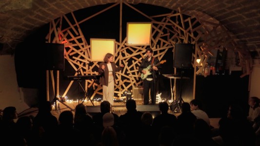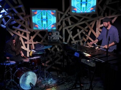 -> ConcertLa musique du duo est largement influencée par les ambiances planantes de Pink Floyd, le rock-jazz expérimental de Frank Zappa et les structures déroutantes de grands groupes progressifs comme King Crimson ou YES. La scène de La Cellule s’est transformée en instrument de percussion lors de ce concert aux visuels oniriques.